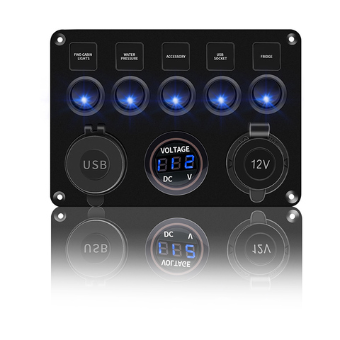 5 عصابة سيارة مركبة بحرية LED لوحة مفتاح متأرجح للماء الدوائر الرقمية الفولتميتر المزدوج USB ميناء 12V منفذ ل BMW E46 أودي A4
